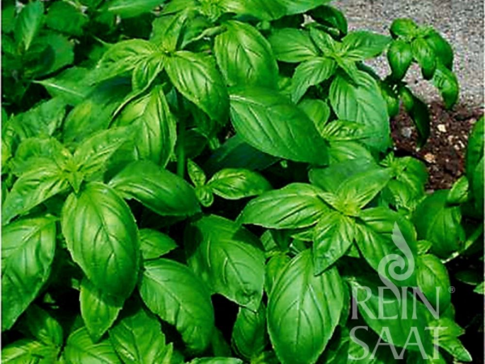 Glänzend dunkelgrünes Basilikum mit wunderbar würzigen, großen, gewellten Blättern. Einjährige, 40 – 60 cm hoch wachsende, wärmeliebende, frostempfindliche Pflanze. Die jungen Triebe und Blätter können laufend geerntet werden. Vorziehen ab Mitte April oder Direktsaat ab Anfang Mai. Lichtkeimer, nur wenig mit Erde bedecken.
