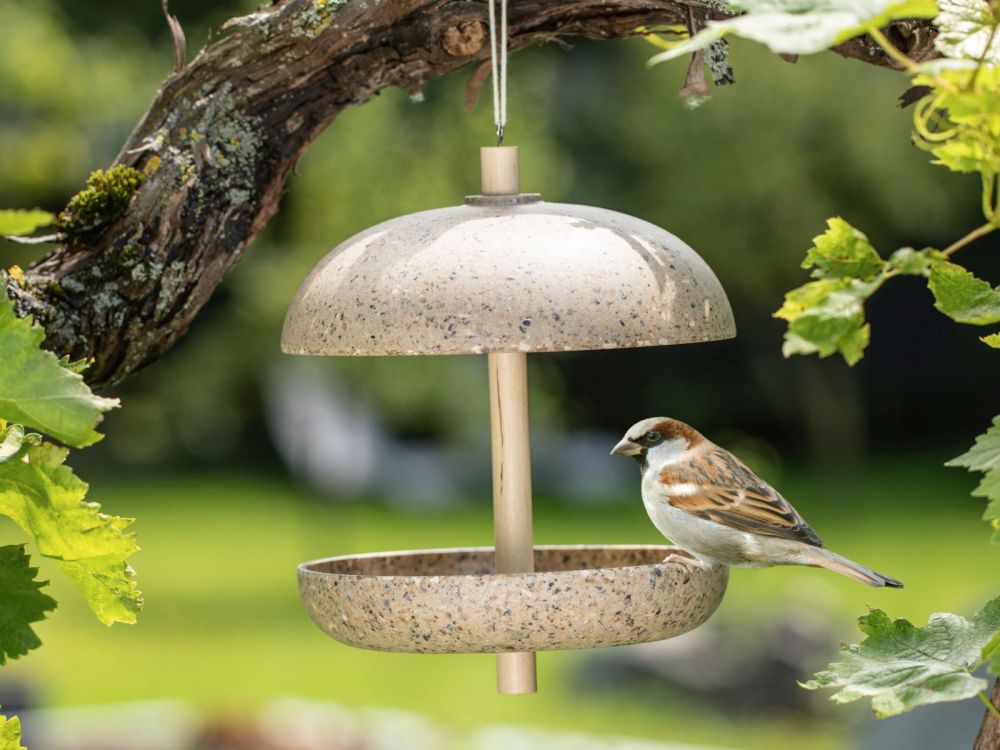 Diese formschöne Vogeltränke ist nicht nur praktisch, sondern auch nachhaltig, denn sie wird aus Pflanzenfasern und landwirtschaftlichen Reststoffen wie Bambus und Kaffeebohnen gefertigt. Sie hilft deinen gefiederten Freunden vor allem im Sommer dabei, ihren Wasserbedarf zu decken. Im Winter kannst du diese Vogeltränke natürlich auch als Futterschale verwenden.