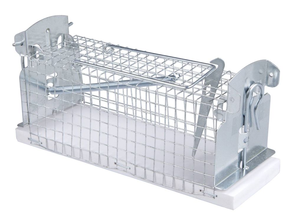 Fange die Mäuse ohne sie dabei zu verletzen. Lege einen Köder (Käse, Speck, Maiskörner) in die Falle. Sobald die Maus hineinschlüpft, wird das Schließmechanismus ausgelöst und die Maus kommt nicht mehr raus.