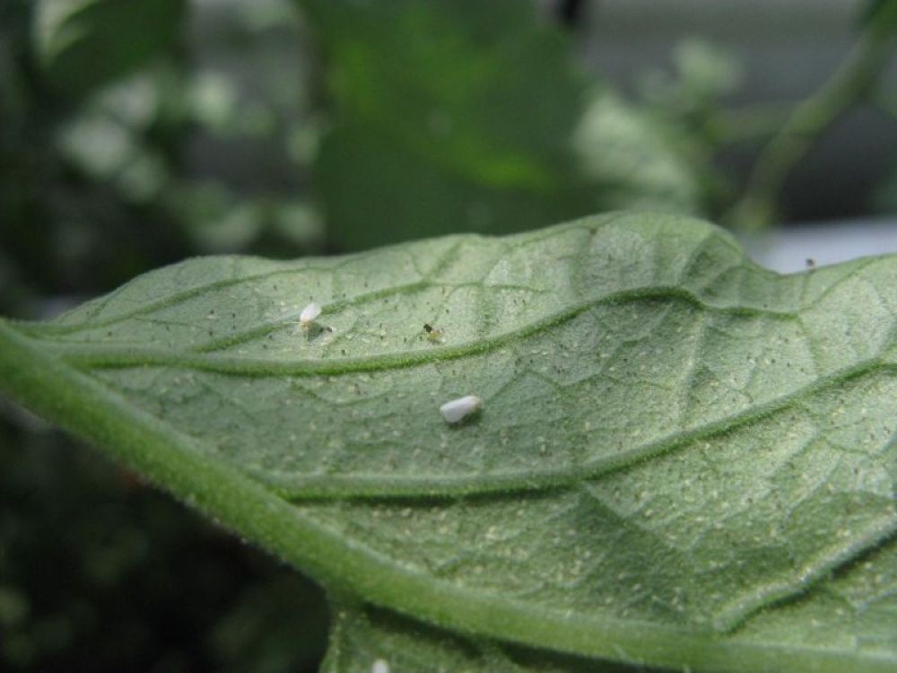 Erwachsene Weiße Fliegen sind ca. 2 mm große, mit weißem Wachsstaub überzogene beflügelte Insekten. Sie befallen zahlreiche Pflanzen, häufig Gurken, Melanzani, Erdbeeren, diverse Kräuter, Fuchsien, Pelargonien, Weihnachtsstern, Hibiskus usw.