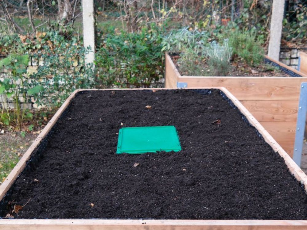 1) Die Wurmbox wird ins (Hoch)Beet eingegraben und mit den gelieferten Kompostwürmern inkl. Startfutter befüllt.