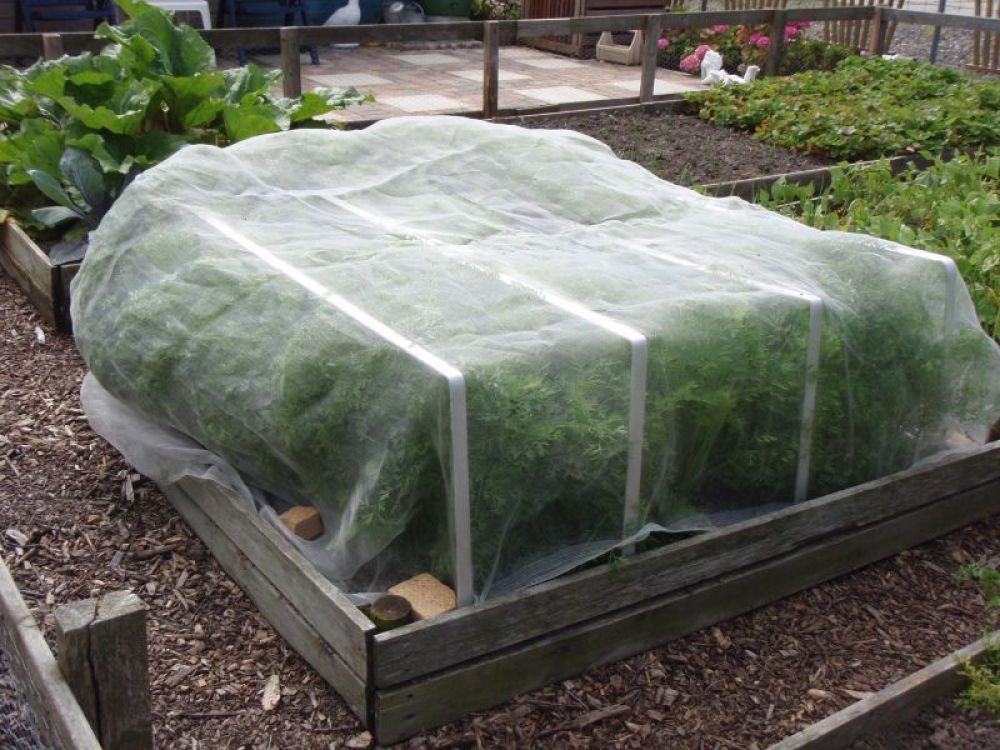 Anwendung: Das Netz einfach auf das Gemüsebeet ausbreiten und beschweren. Bei höheren Pflanzen empfiehlt sich eine Stütze (z. B. gebogene Metallstangen), sodass eine Art Dach über dem Beet entsteht. Das Netz kann genauso gut in Hochbeeten verwendet werden.