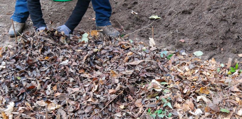 Auf das abgeräumte, gelockerte Beet kommen nun die beiseite gelegten Gemüse- und Unkrautreste. Verteile diese gleichmäßig auf dem Beet. Dazu kannst du ordentlich Laub (z.B.: von Obstbäumen – außer Nusslaub, Ziersträuchern usw.) mischen.