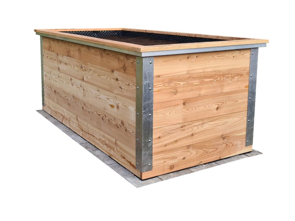 Das Hochbeet besteht aus massivem, gehobeltem Lärchenholz in 1A Qualität mit Nut und Feder.